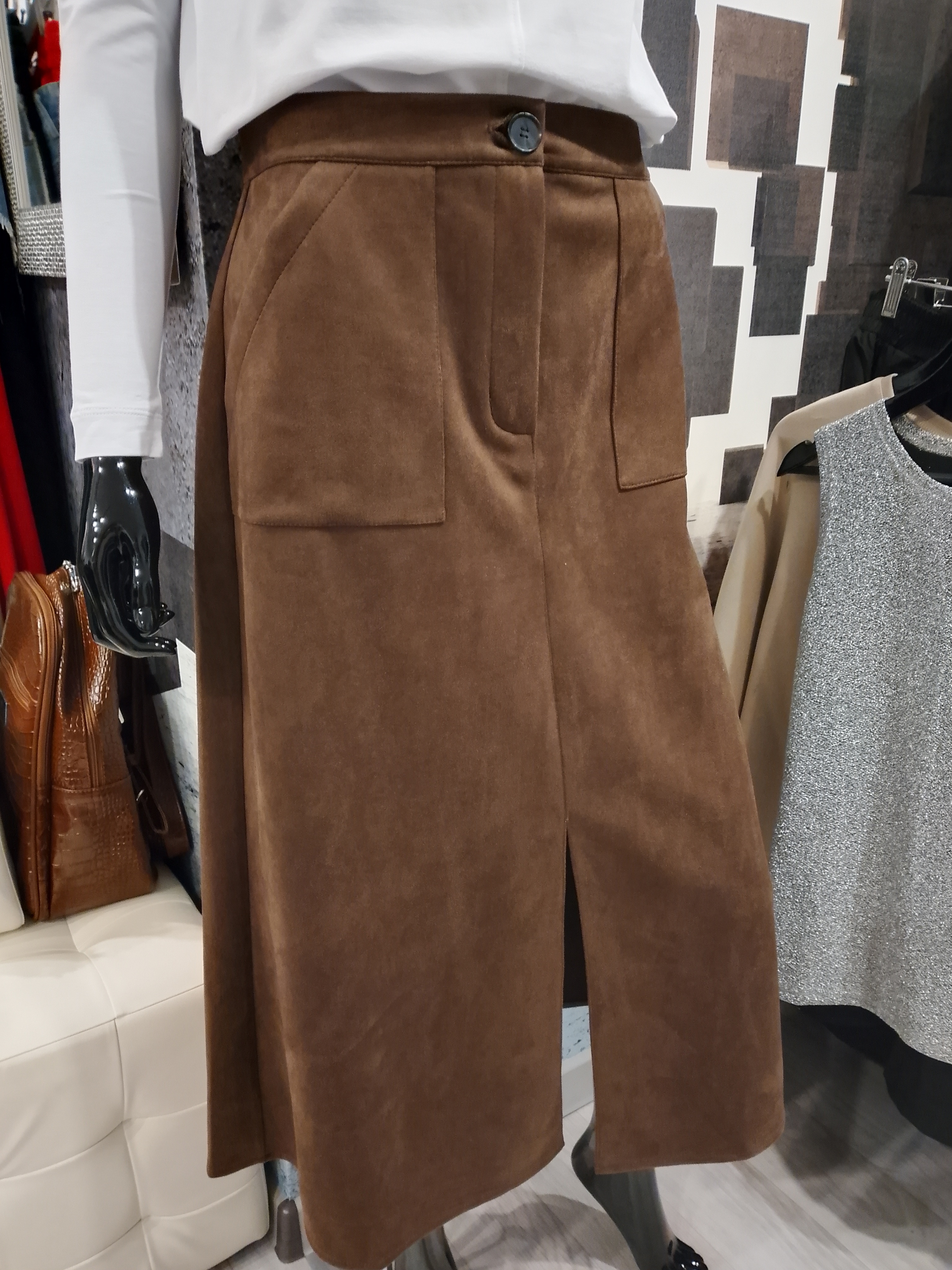Шоколадная замшевая юбка размера 46 – ваш стильный спутник в создании незабываемых образов! Плавные линии подчеркнут фигуру, а благородство материала добавит образу элегантности и шарма. Ткань приятна к телу и долговечно сохраняет форму и цвет. Идеальный выбор для особых случаев и повседневного ношения! Удобная посадка по фигуре делает ее комфортной даже при длительном ношении. Ваш шикарный аксессуар уже ждет вас!